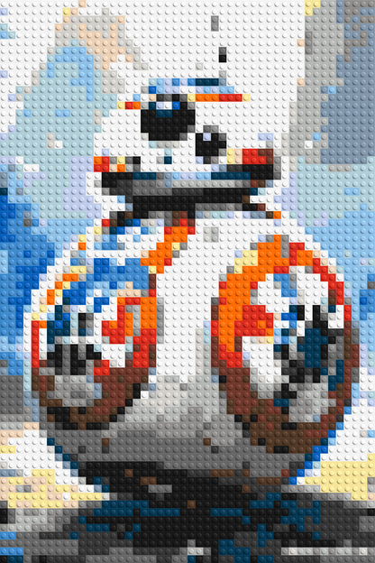 Bring a touch of galactic charm to your space with this Brick Me mosaic kit of BB-8 — the spirited astromech droid who rolled into the hearts of Star Wars fans everywhere. Known for his adventurous personality, loyalty to Poe Dameron, and endearing beeps, BB-8 has become a modern icon of the Star Wars universe. This detailed mosaic captures his distinctive spherical design and orange-and-white panels, making it a delightful build for fans of all ages.