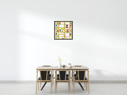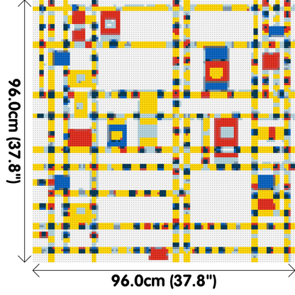 Introducing our latest addition to our Lego-compatible art mosaic collection, Broadway Boogie Woogie by Mondrian. This iconic masterpiece is a celebration of the dynamic energy of New York City's grid system. The painting features a vibrant patchwork of rectangular shapes in varying sizes, representing the bustling streets and the flow of traffic.