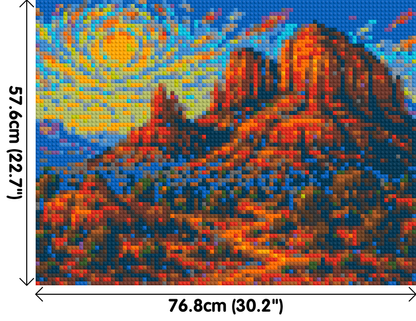 Bring the breathtaking beauty of the American Southwest into your home with this vibrant brick mosaic kit, featuring a stunning desert mountain scene illuminated by a swirling, golden sunset. Inspired by the dramatic colors of Sedona’s red rock formations and reminiscent of Van Gogh’s expressive style, this mosaic captures both nature’s grandeur and artistic flair. The kit includes all the bricks and easy-to-follow instructions you need to build it yourself. A perfect blend of creativity, color, and craftsmanship!