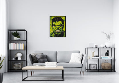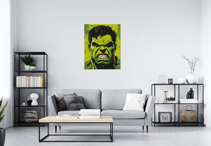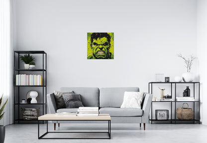 The Hulk, also known as Bruce Banner, is a brilliant scientist whose transformation into the Hulk represents the uncontrollable power of rage. Despite his monstrous appearance, the Hulk often uses his strength for good, battling alongside the Avengers to protect the world. This mosaic is a tribute to the duality of his character â the calm intellect of Bruce Banner and the raw might of the Hulk. Display this iconic portrait in your home or office and celebrate the legend of the Hulk in true artistic style.